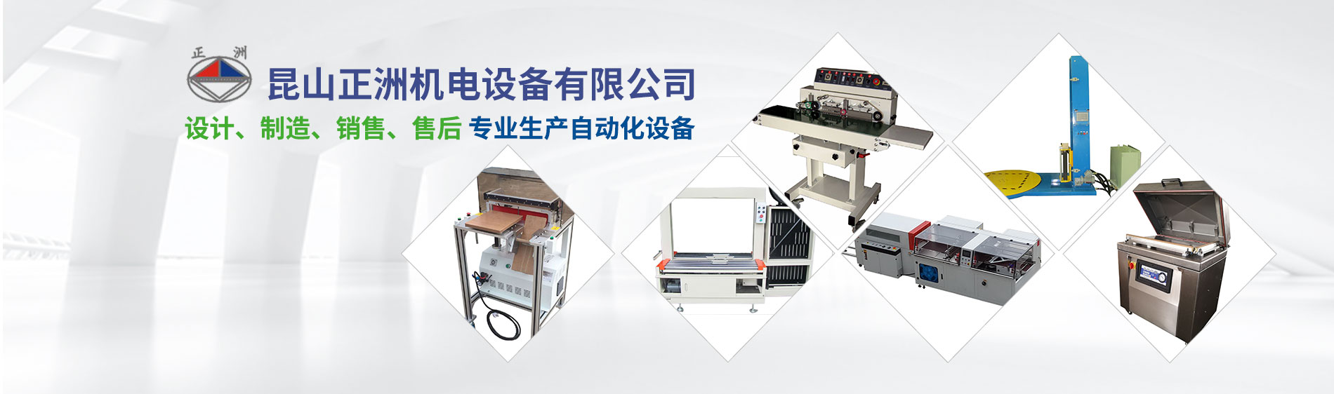 昆山正洲機電設備有限公司14年以來,堅持設計、制造、銷售、售后服務一條龍服務。生產經營范圍迅速擴大,形成以下產品系列: 自動封箱系列;自動打帶系列;自動封口熱收縮系列;棧板自動包裝系列;抽真空包裝系列;省力真空搬運系列;流水線輸送系列;自動貼標/套標系列;熱熔膠自動噴膠/貼合系統;進口手動打包工具系列;平面式裹包系列;自動倉儲系列;塑膠蓋自動封蓋系列等各種產品的無人化包裝系統的設計與制造。 公元1981年春,在莊志斌先生的帶領下,于桃園成立了一家專業生產自動化設備的工廠。主要生產后段包裝機械及PP打包帶,經過20多年的苦心經營已頗具規模,客戶達到3000多家。于2001年在廣東成立(東莞)工廠;2002年在江蘇成立昆山正洲機電設備有限公司(總部)。